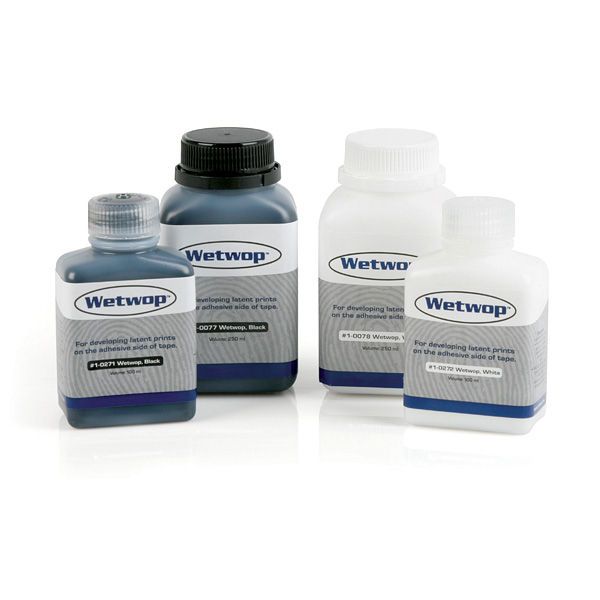 Wetwop™ is a pre-mixed liquid that produces excellent friction ridge detail when used to develop prints on any adhesive surface, such as masking, duct, clear, cellophane, brown packaging, and nylon reinforced strapping tapes.
