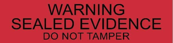 These four-inch long “Sealed Evidence” labels come in a repeating roll of 250 labels. A slit between each seal on the roll makes it easy to remove individual seals. Since these seals have a paper backing, a number of seals may be cut from the roll and placed in vehicles and evidence collection kits. Labels are available on red stock with black printing or on white stock with blue printing. Each seal is 1”W x 4”L (2.5cm x 10.2cm).