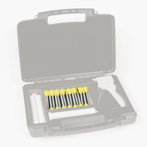 AccuTrans is a highly-sensitive, DNA-friendly casting material for tool marks, firearms and lifting latent prints from difficult surfaces. Casting material comes in dual-stage tubes, which include casting material and catalyst. When utilized, casting material and catalyst are mixed on demand through a unique mixing tip. No hand mixing is required and casting material is only used as needed. Casting material won’t dry in the tube if the tip is left on. Replace the tip when ready to make another cast. Each kit includes two tubes of AccuTrans, one applicator gun, 40 mixing tips and a carrying case. • Provides extremely fine detail