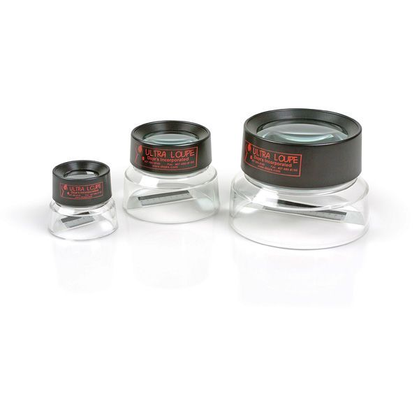 These wide magnifiers are ideal for measuring and analyzing bloodstains. Featuring extra-wide opening, the base is skirted with transparent acrylic, allowing ambient light to illuminate the evidence being observed. An easy-to-read metric scale is suspended across the center of the base. Ultra Loupe magnifiers come in three different sizes and powers of magnification. The 7x model has a 3.8cm (1 1/2") diameter lens and 7.6cm (3") diameter base.