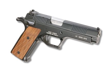 Semiautomatic pistol, recoil operated, geometric, short barrel locking system. The magazine is prismatic and the pistol has ambidextrous release button. The single action, the fully adjustable trigger mechanism, and the flawless operation with any commercial ammunitions make the GT a desirable pistol for any competitor. Light weight special alloy frame with a slide made from special steel and the micro-metric adjustable rear sight are other advantages of this model. Finishing: all the steel parts have been burnished and chromium plated, all the alloy parts have had a special Anodic Oxidation Treatment. Different models of scope mounts are available. Walnut grip plates. The evolved GT pistol line continues the tradition of using high quality materials and workmanship to deliver exceptional competition firearms. The unique grip angle allows low positioned center bore line for a clean and easy shot with perfect recoil control. All features ensure absolute precision of the GT series and make it a great choice for IPSC, Action and Bullseye shooting competitions.