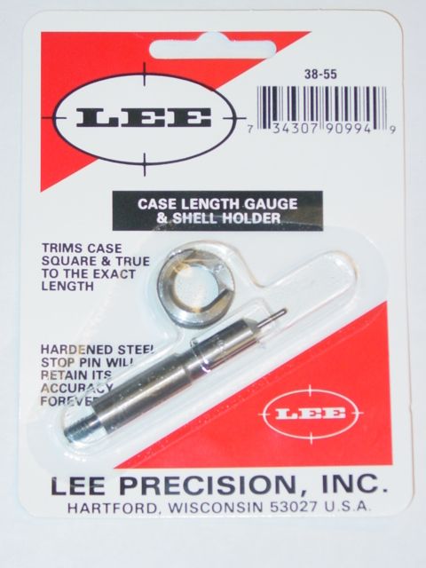 Lee 38-55 Case Length Gauge is a precise, easy way to trim to length and square the case mouth. Used with the Cutter and Lock Stud or Zip Trim.