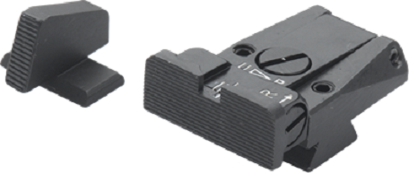 Adjustable sight set, machined from solid steel “all black serrated” for Browning HP Vig., HP MKIII, HP Pract., HP40.