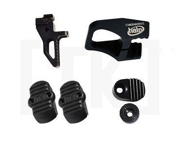 This kit is available with black or silver parts to customize the look of your gun. The Limited Edition red will have a red "Victory" Trigger, red "Titan" Extended Magazine Release and a black "halo" Charging Ring. *Note: the "VictoryPRO" Extended Magazine Bumpers are only available in black.*