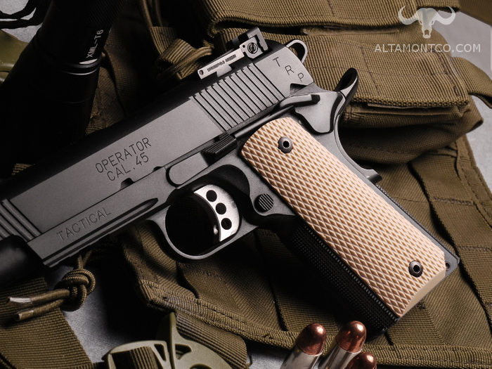 After machining, we texture the tactical grips. By variations in the machined or lasered lines we can change the coarseness of the feel or "bite". This allows for flexible functionality that might center on casual shooting, maybe sweaty palms, at one level up to competition requirements, absolute foundational stability. We know what we are doing in using this difficult material and believe our G10 grips will be very satisfactory. Buy your custom ALTAMONT G10 Grips today with full confidence.