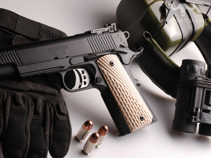After machining, we texture the tactical grips. By variations in the machined or lasered lines we can change the coarseness of the feel or "bite". This allows for flexible functionality that might center on casual shooting, maybe sweaty palms, at one level up to competition requirements, absolute foundational stability. We know what we are doing in using this difficult material and believe our G10 grips will be very satisfactory. Buy your custom ALTAMONT G10 Grips today with full confidence.