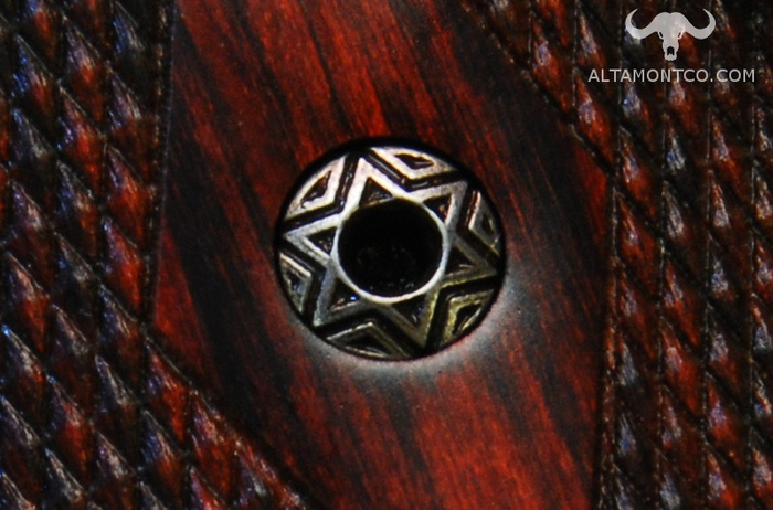 These custom engraved screws will fit any standard 1911 Government, Officer, and Commander grips/bushings. Also, fits the S&W 22 Victory frame and Ruger Mark IV 22/45 (ALTAMONT® grips only).