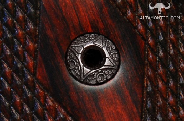 These custom engraved screws will fit any standard 1911 Government, Officer, and Commander grips/bushings. Also, fits the S&W 22 Victory frame and Ruger Mark IV 22/45 (ALTAMONT® grips only).