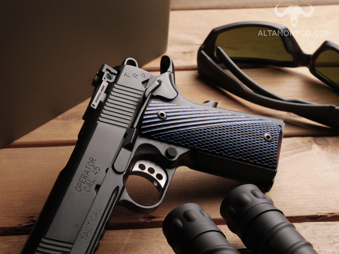 After machining, we texture the tactical grips. By variations in the machined or lasered lines we can change the coarseness of the feel or "bite". This allows for flexible functionality that might center on casual shooting, maybe sweaty palms, at one level up to competition requirements, absolute foundational stability. We know what we are doing in using this difficult material and believe our G10 grips will be very satisfactory. Buy your custom ALTAMONT G10 Grips today with full confidence.
