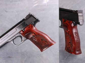 ALTAMONT® offers an Ultima Panel style grip with ambidextrous thumbrest in Super Rosewood, Silverblack, or Super Walnut. Available in textured Checkered Fleur-de-Lis or smooth. This grip will fit any S&W Model 41.
