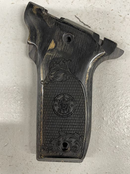 S&W 22 Victory Classic Panel Silverblack Checkered Engraved - Thsee Classic Panel grips have a thumb indent for easy access to the magazine release, similar to the factor polymer panels.
