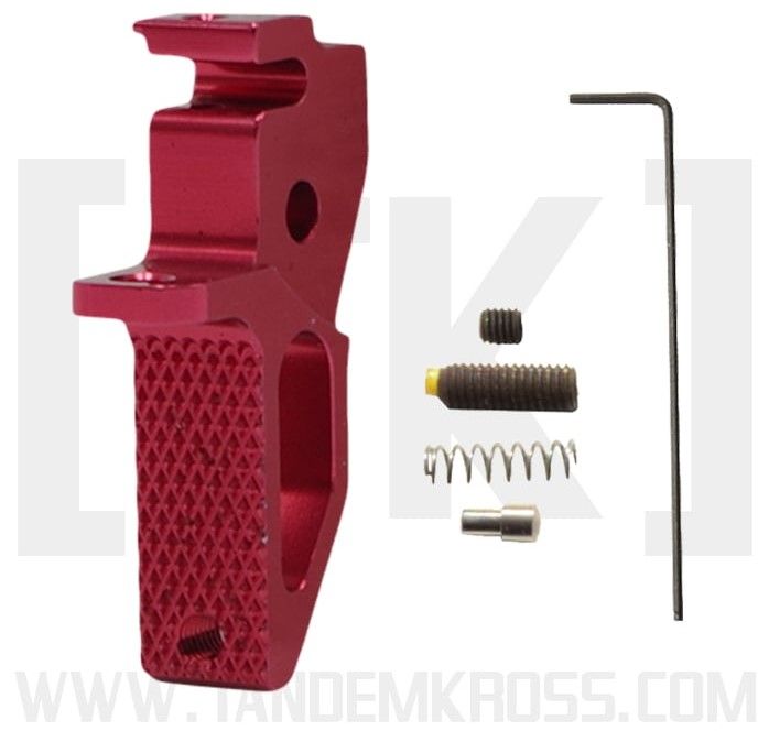 The skeletonized, lightweight design of the TANDEMKROSS Victory trigger provides a flat face that allows the shooter to pull straight back and makes it easier to tell if they are pulling too far to the left or right. In addition to actually reducing the trigger pull weight by up to .5lbs, the flat-faced design also allows the operator to place their finger lower on the trigger, increasing leverage and giving the perception of an even lower pull weight.