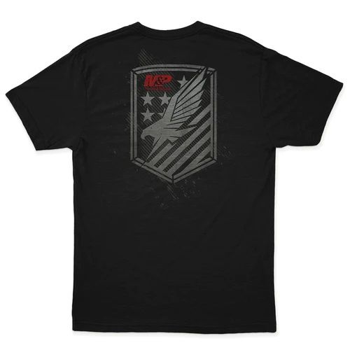 M&P® by Smith & Wesson® Eagle Shield Short Sleeve Premium Tee. Show your devotion to freedom, truth, and honor with the M&P® by Smith & Wesson® Eagle Shield soft-touch printed on this premium short sleeve tee shirt. Eagle Shield is soft-touch printed on the back and the M&P® by Smith & Wesson® logo is printed on the front left chest.