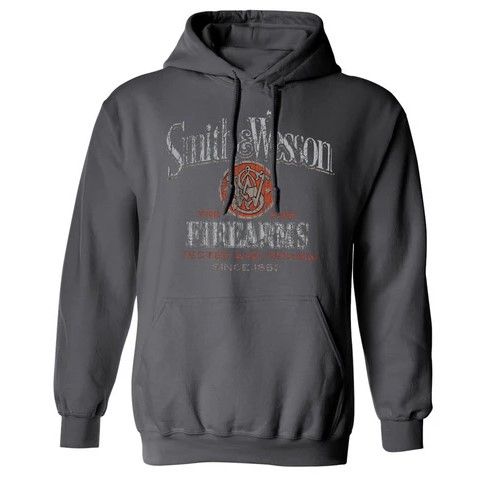 Smith & Wesson® Tested and Proven Graphic hoodie featuring a Smith & Wesson whiskey barrel style design. Empowering Americans since 1852, Smith & Wesson® graphic is soft-touch printed on this granite grey hoodie.