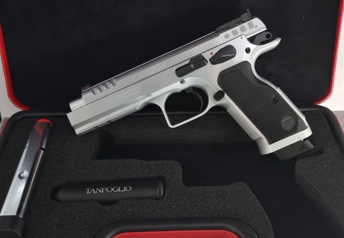 Evolution of the Stock III model with bull barrel, new aluminum grips, hard chromed finish and a new and improved trigger system.